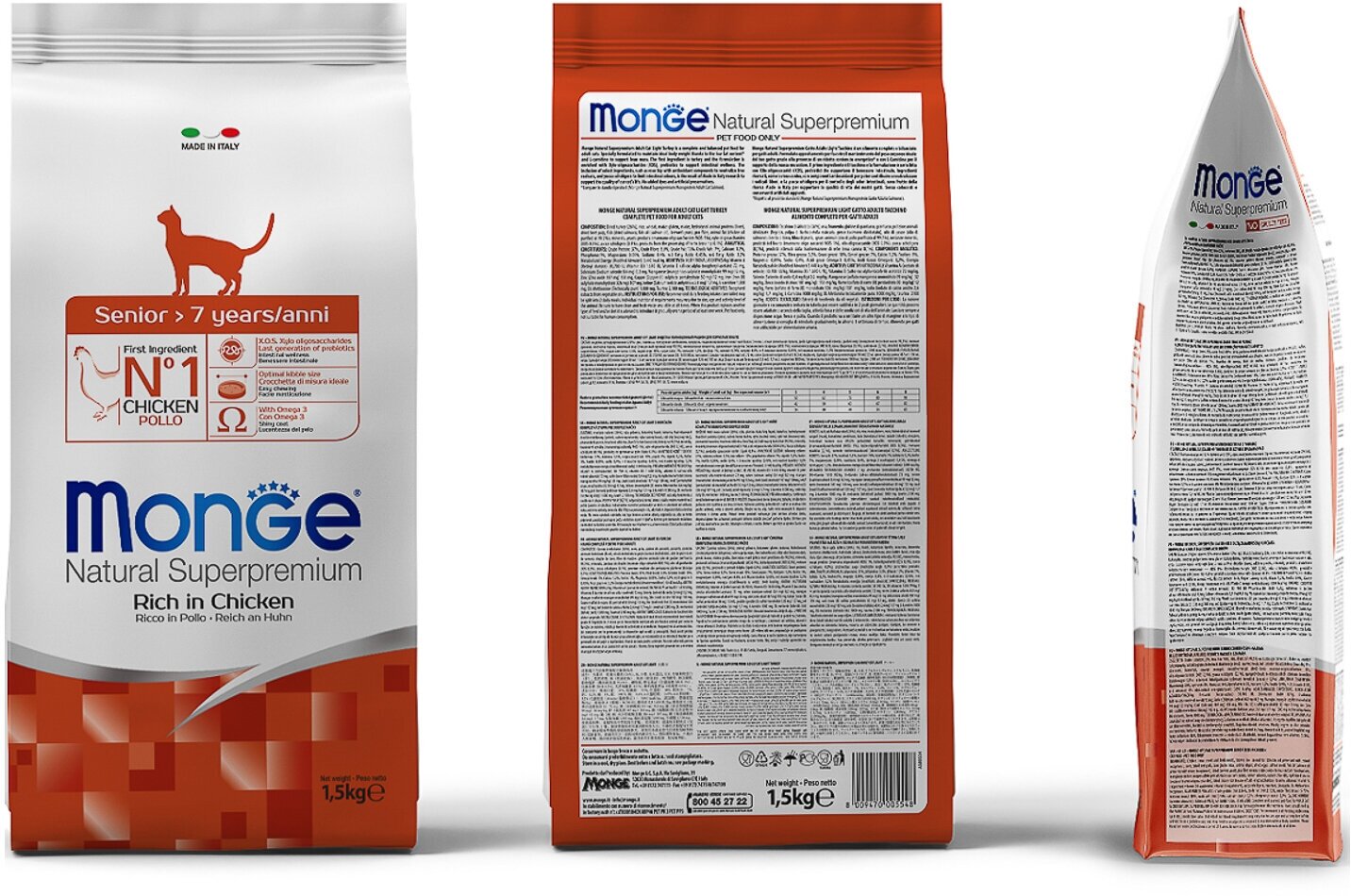 Ниже Вы можете прочитать отзывы на Сухой корм для пожилых кошек Monge Superpremium Cat, для здоровья кожи и блеска шерсти, профилактика зубного камня, с курицей 1.5 кг, ознакомится с подробными характеристиками, посмотреть интересные обзоры и фотографии на Сухой корм для пожилых кошек Monge Superpremium Cat, для здоровья кожи и блеска шерсти, профилактика зубного камня, с курицей 1.5 кг.