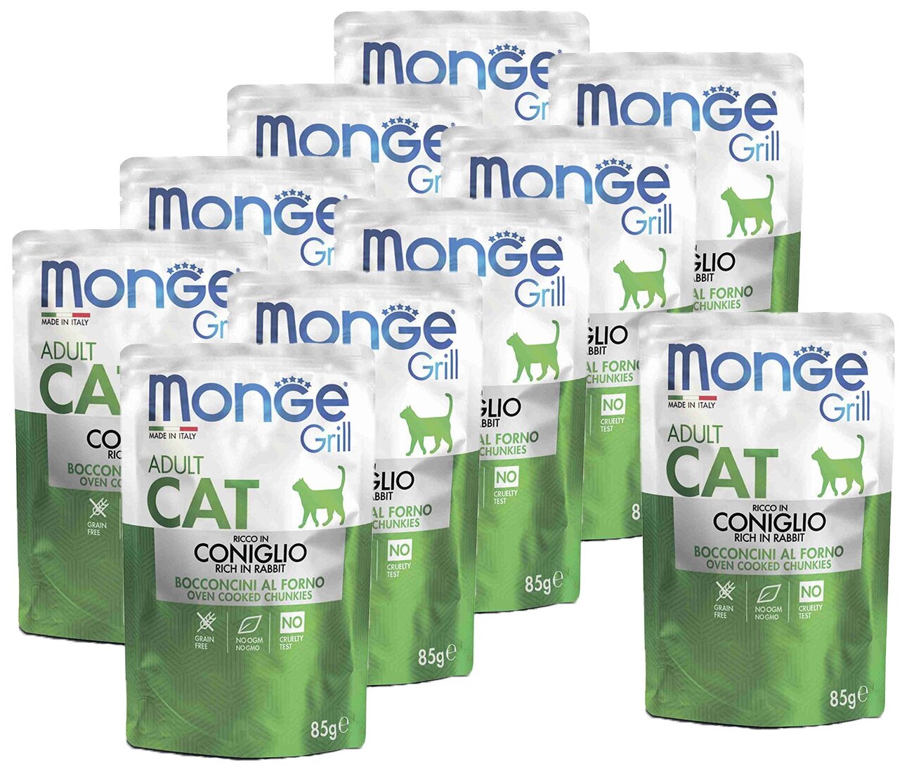 Купить Monge Cat Grill Pouch паучи для взрослых кошек итальянский кролик 85г х 10 шт.