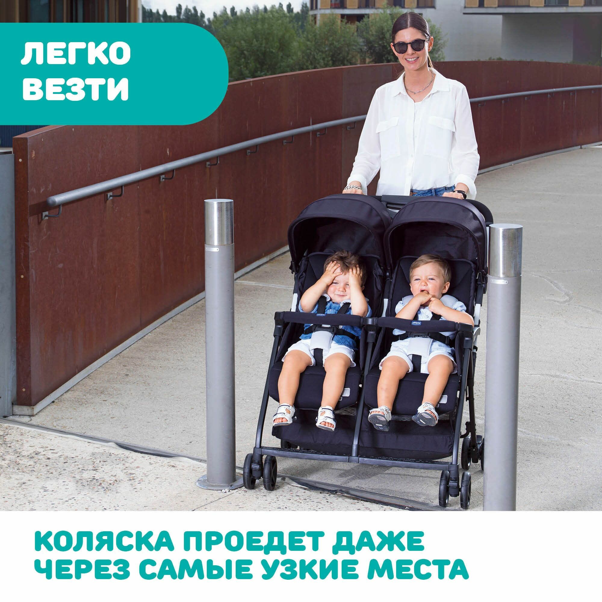 Коляска прогулочная детская для двойни Chicco OHLALA TWIN для близнецов или детей погодков , для новорожденных 0+ легкая и компактная, складная черная, вещи для детей