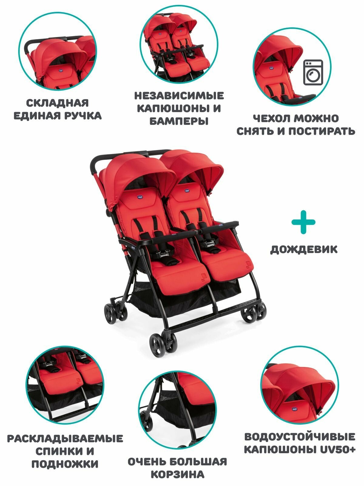 Прогулочная коляска для двойни Chicco Ohlala Twin, расцветка Paprika