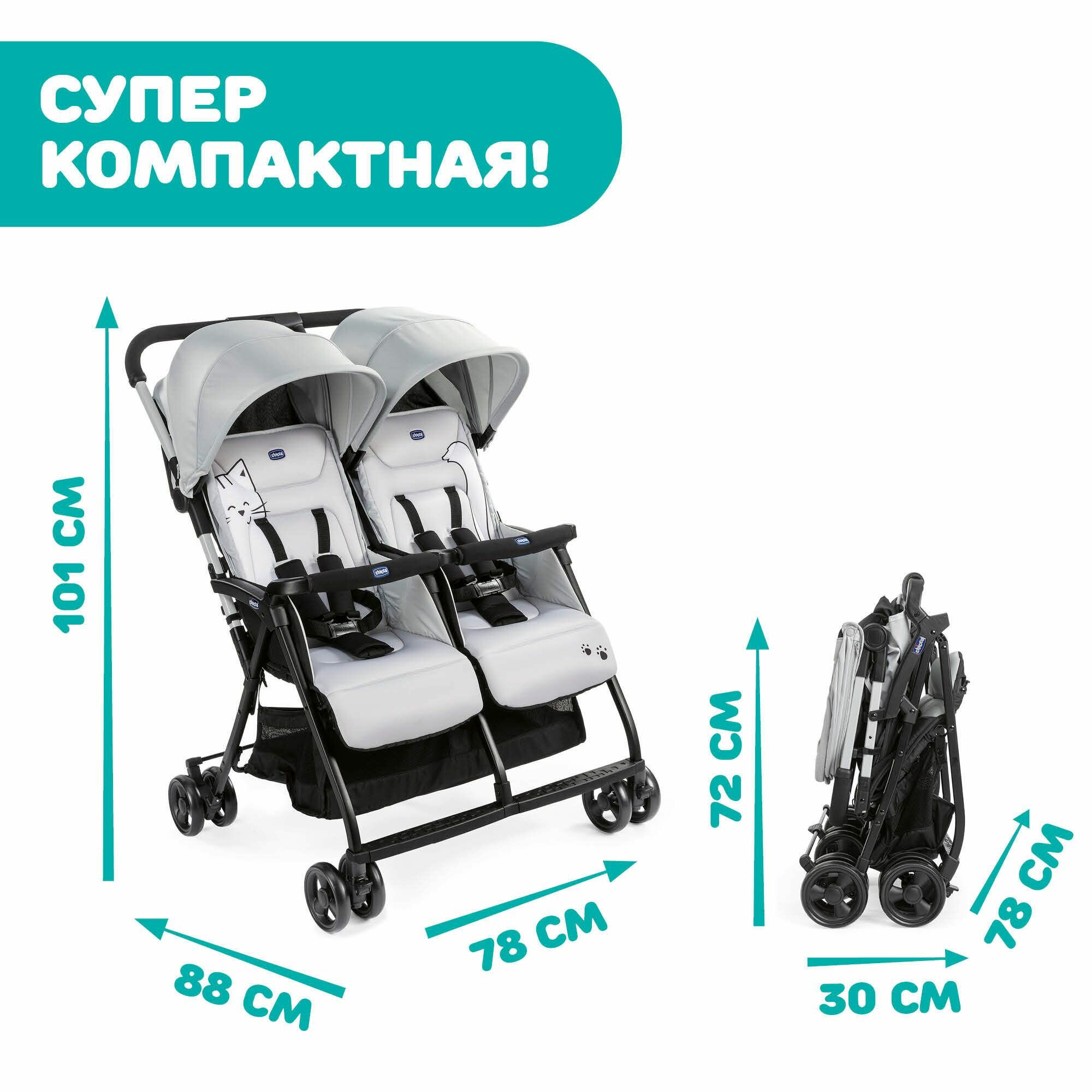 Коляска прогулочная детская для двойни Chicco OHLALA TWIN для близнецов или детей погодков, для новорожденных 0+ легкая и компактная, складная серая, вещи для детей