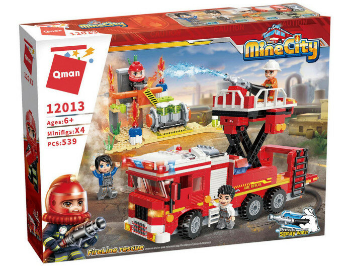 Конструктор Qman Пожарная машина 539 детали, в коробке (FCJ0678161)