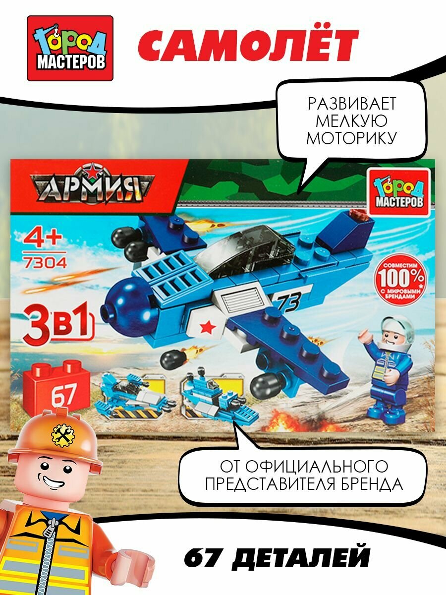 Конструктор самолет 3в1, 67 дет. Город мастеров / конструкторы