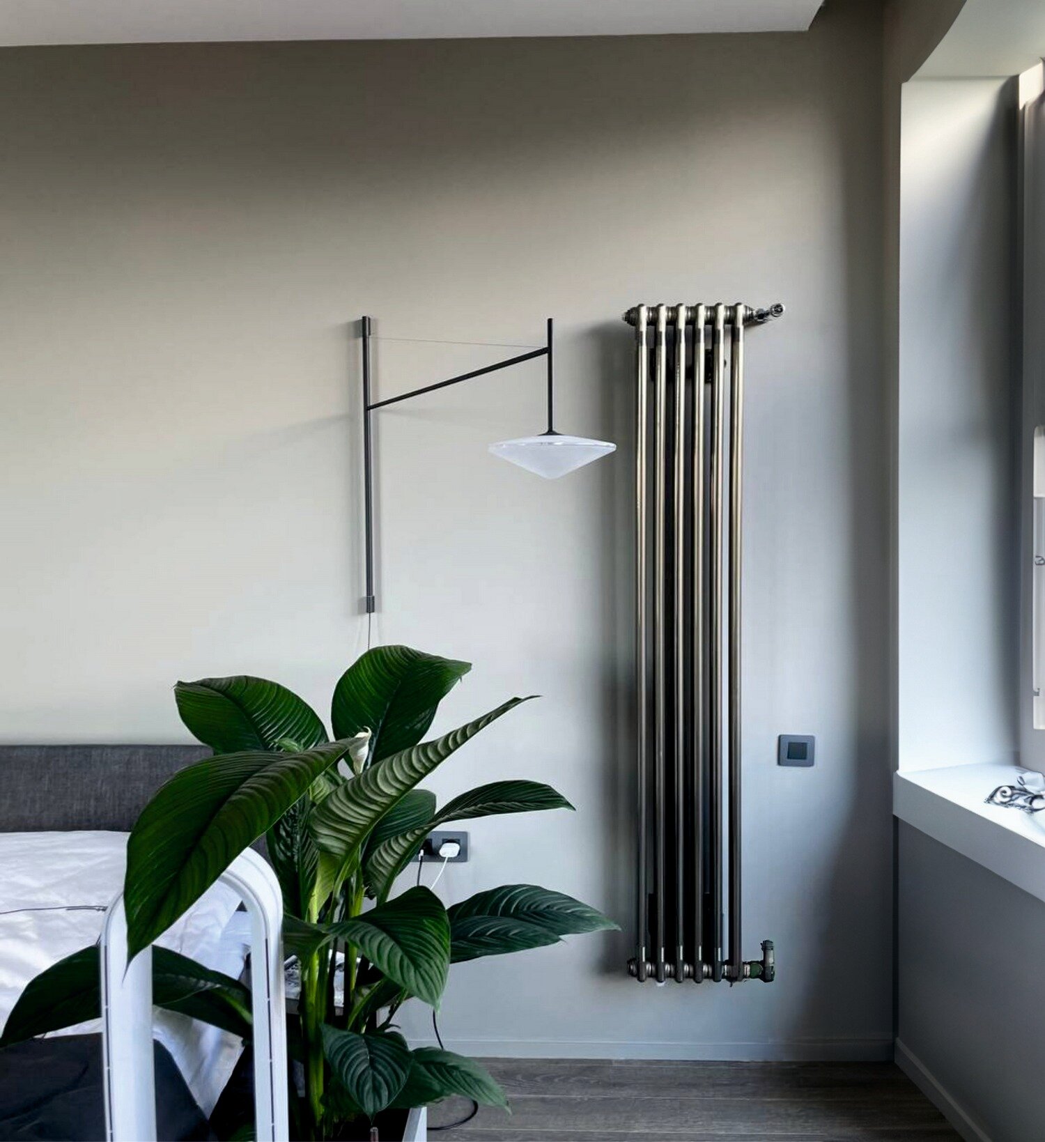 Стальной трубчатый радиатор Zehnder Charleston 2180/04 с боковой подводкой цвет Technoline (Кронштейн в комплекте)