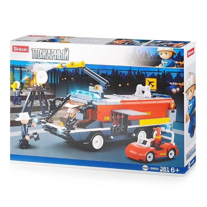 Конструктор пластик Sluban, пожарная машина аэропорта, 381 деталь,3 фигуры