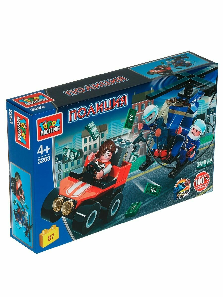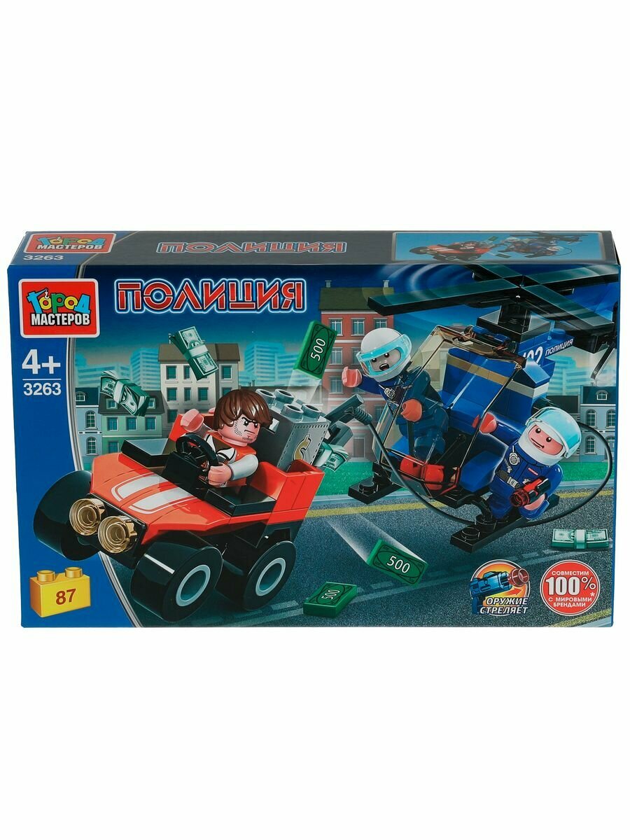Конструктор полицейская погоня на вертолете, 87 дет. Город Мастеров 3263-UU интересное: