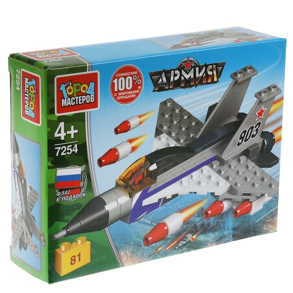 Конструктор военный самолет, 81 дет. Город мастеров / конструктор