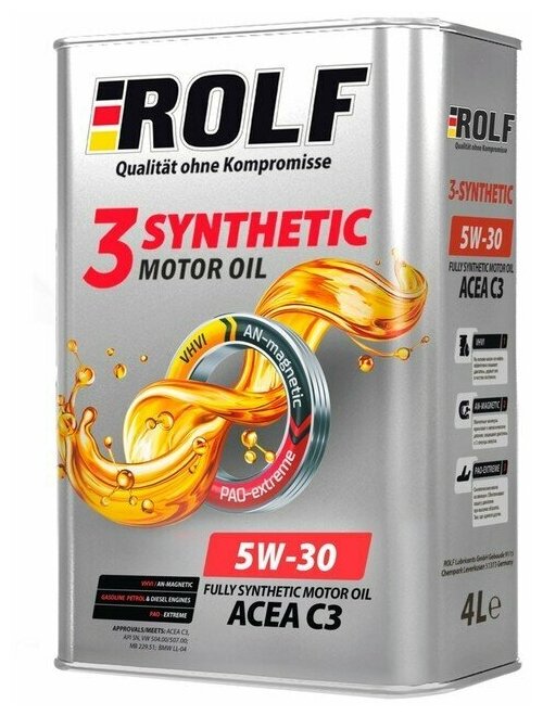 ROLF Rolf 3-Synthetic 5w-30 C3 (1л) Api Sn; Acea C3-2012; Mb 229.51; Vw 504.00/507.00; Bmw Ll-04; Porsc