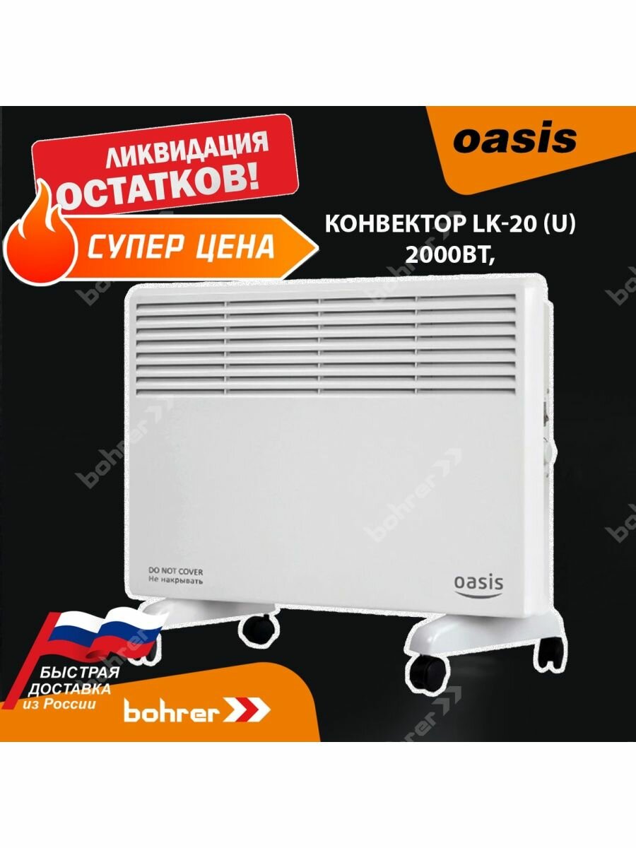 Конвектор электрический Oasis LK-20 2000Вт, настенная/напольная (колесики) установка