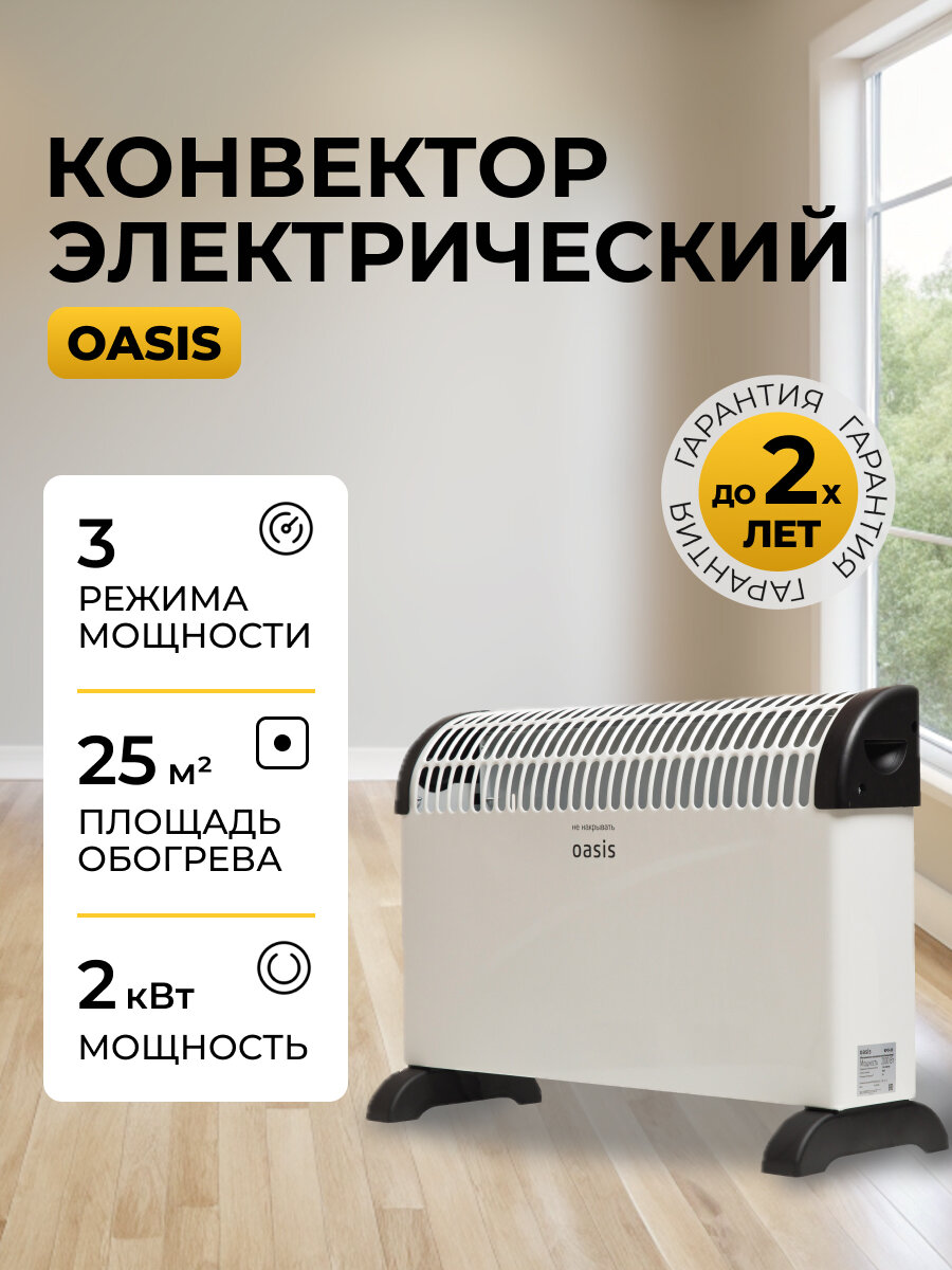 Обогреватель-Конвектор электрический с терморегулятором 2000 Вт KPO-20 (U) 4640015380634 Oasis