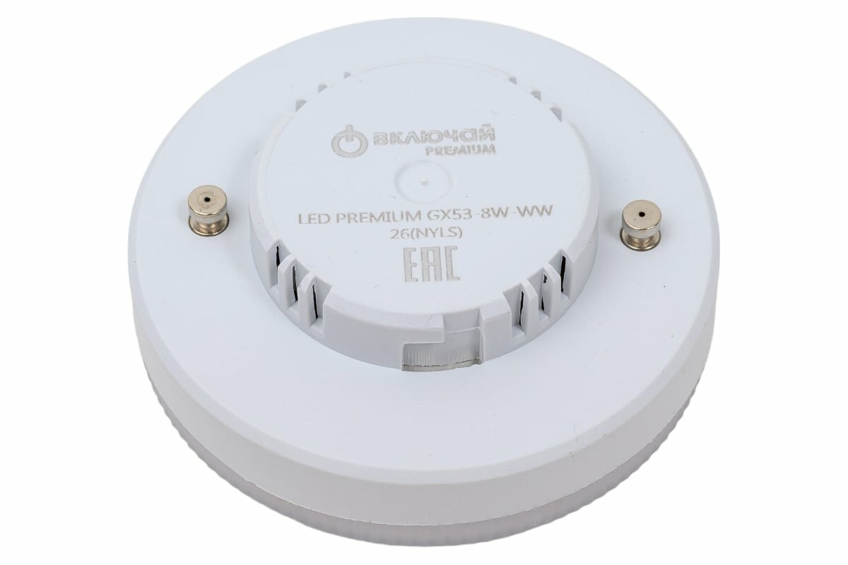 Купить Лампочка светодиодная 1 шт 8W GX53 LED 6000K 220V 75*27mm (LED PREMIUM GX53-8W-WW) Включай