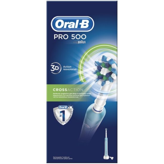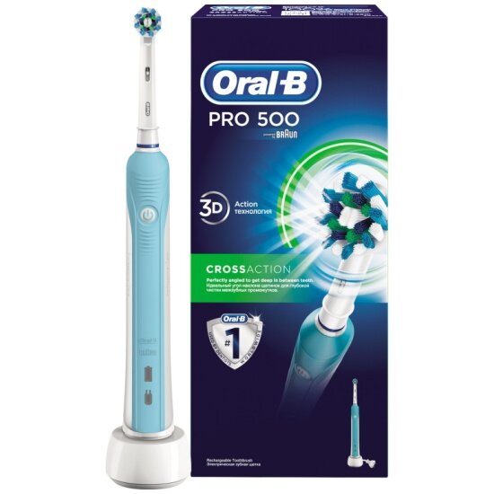 Электрическая зубная щетка Oral-B Pro 500 CrossAction, голубой (80273462)