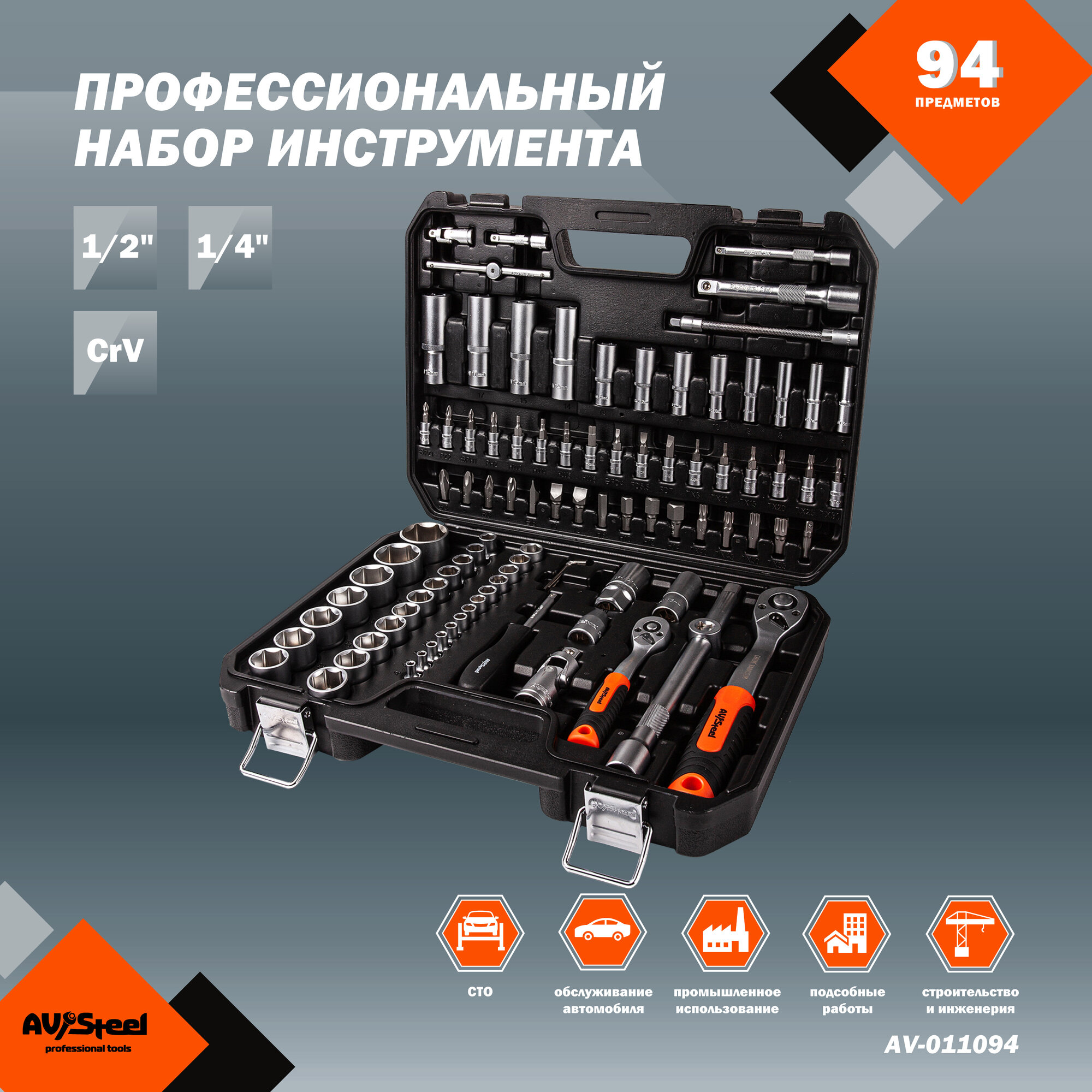 Набор инструмента "AV Steel" 94 предмета 1/4",1/2", профессиональный