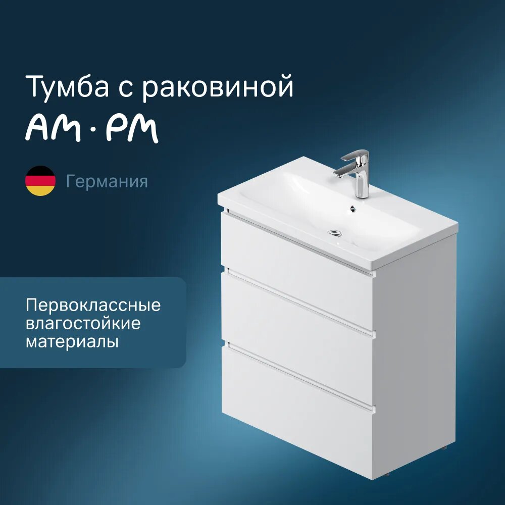 Тумба с раковиной AM.PM GEM S M91-FSX0752-WC0752WG напольная, 75 см, 3 ящика, белый глянец интересное: