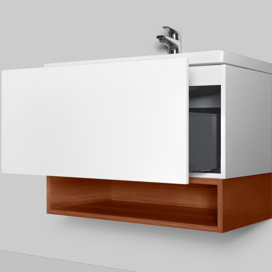 | Отзыв: | Подвесная тумба довольно простая, прямоугольной формы, зато крепления не видны совсем. Интерьер не испорчен, так сказать. Выдвижной ящик приличного размера, а внутри деления удобные, можно их как снять, сделав одно большое, так и поставить, поделив на полочки. |