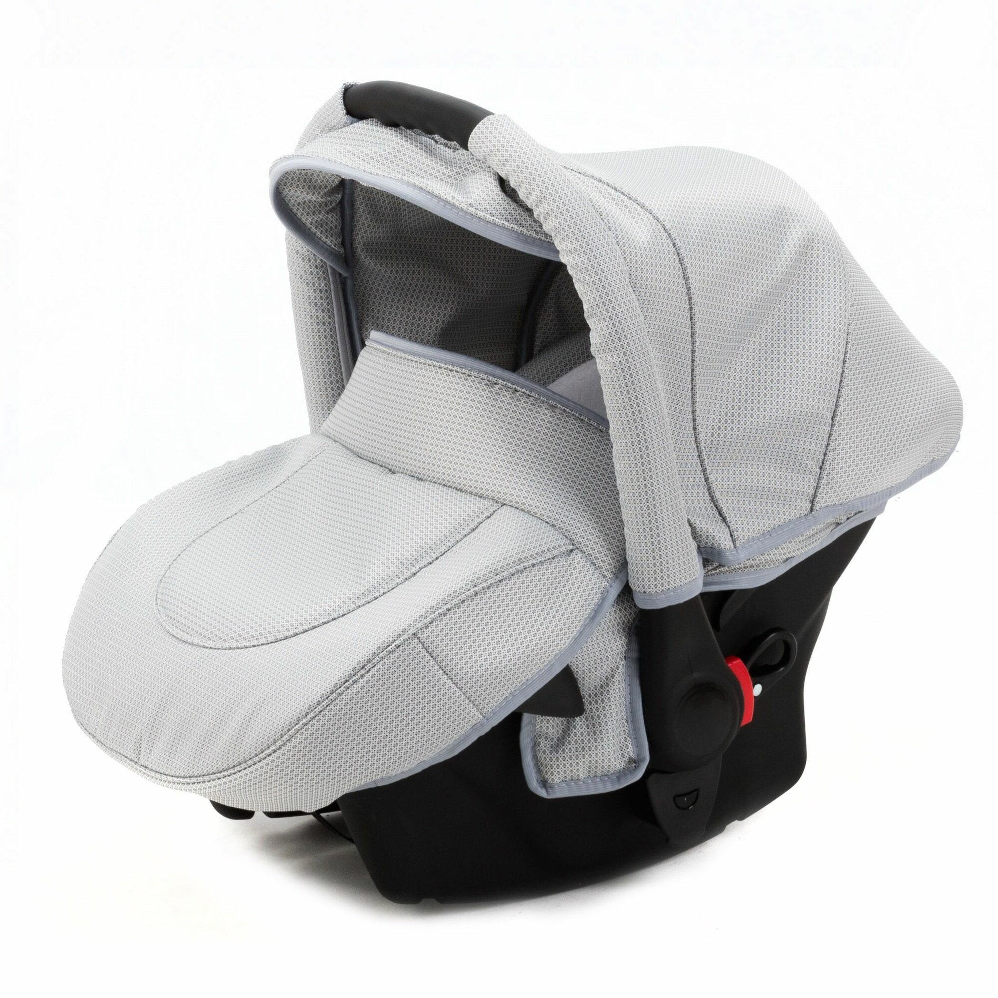 Коляска универсальная Adamex Bibione LUX 3 в 1, BI-TSB13 - бело-серая рогожка, темно-серая перламутр кожа