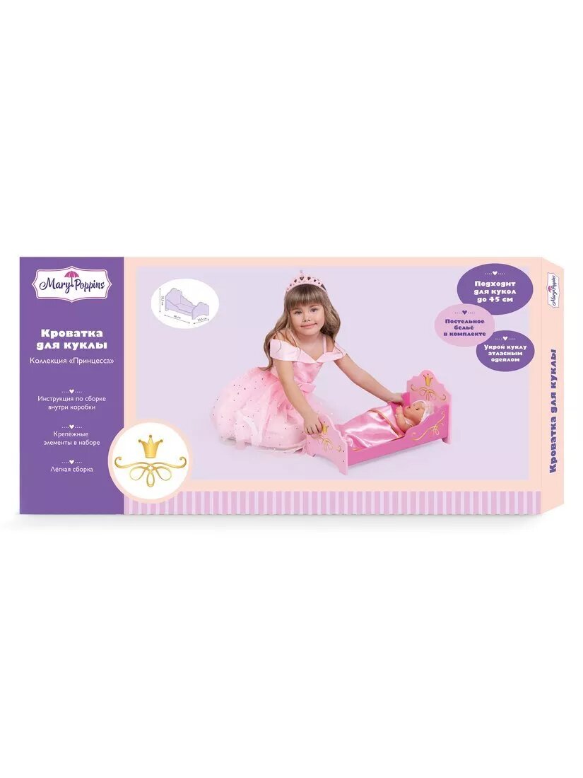 Кроватка для куклы Принцесса Mary Poppins 67398 интересное: