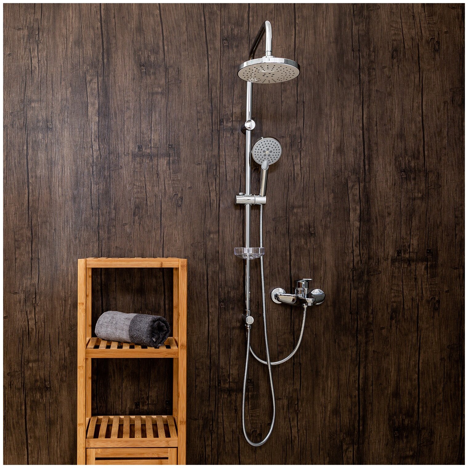 | Комплектация | Смеситель / душевая стойка / верхний душ / ручной душ / шланг / инструкция / гар. Талон |