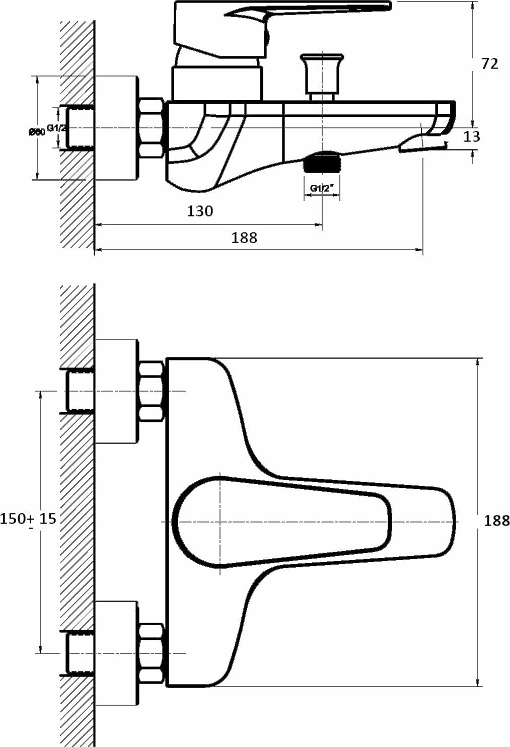 | Форма верхнего душа | круглая |