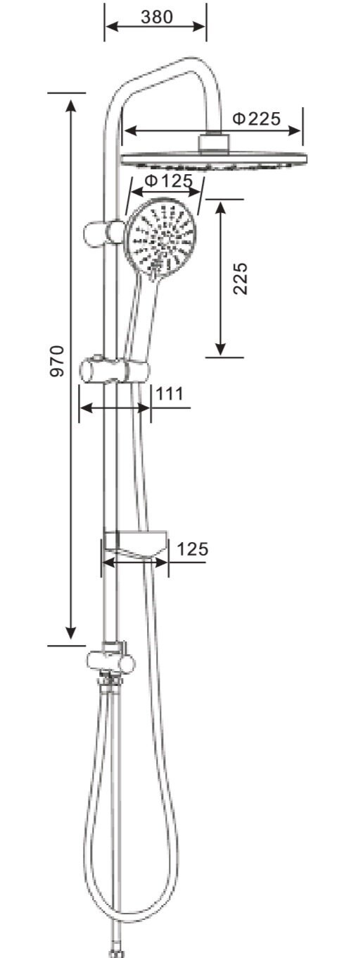 | Комплектация | верхний душ / шланг для душа / душевая лейка / душевая штанга / Смеситель |