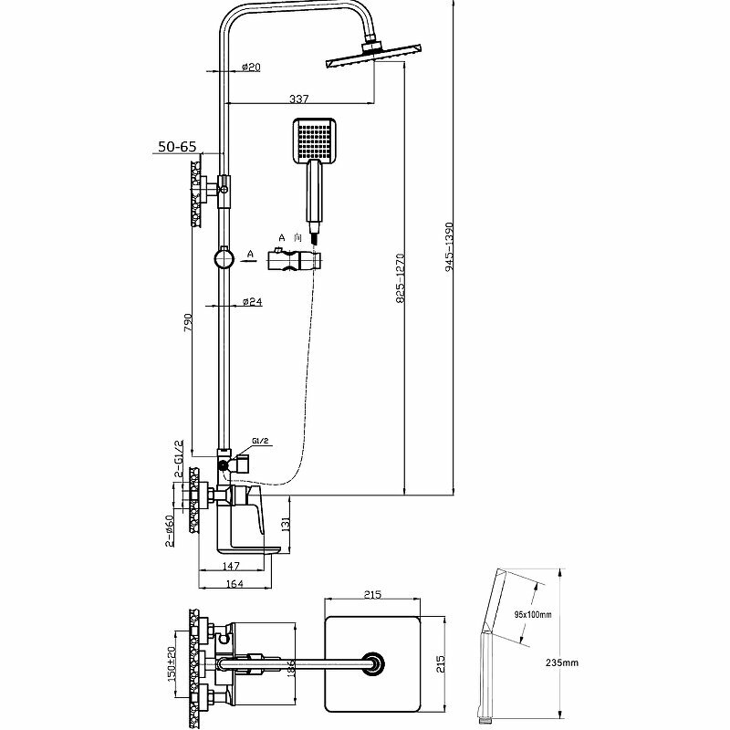 | Комплектация | верхний душ / шланг для душа / излив / Смеситель / душевая лейка / душевая штанга / держатель лейки / держатель штанги / эксцентрики / инструкция |