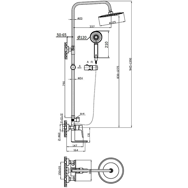 | Количество режимов верхнего душа | 1 |
