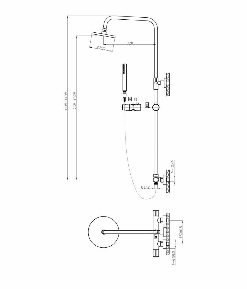 Душевая система Agger Slim со смесителем, хром (A2291200)