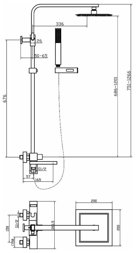 | Комплектация | верхний душ / шланг для душа / душевая лейка / душевая штанга / Смеситель |