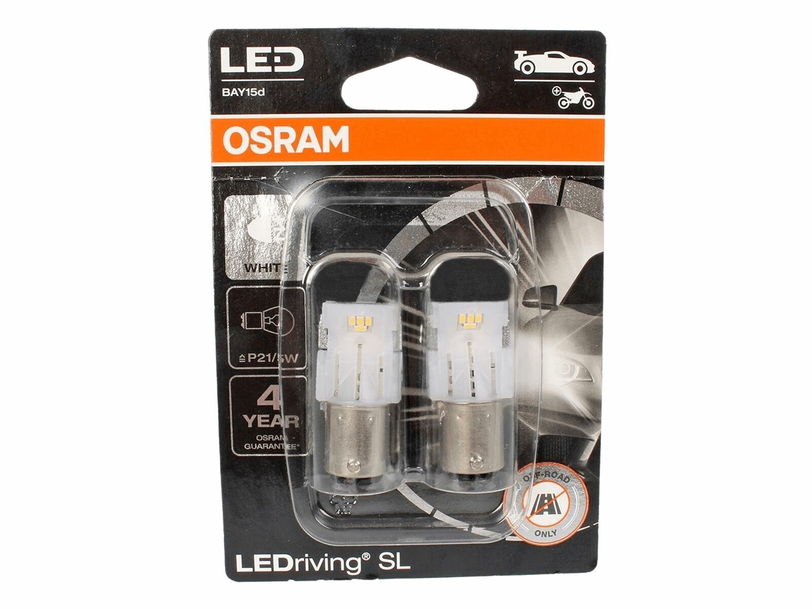 Ledriving sl (3поколение) 2,0w/12v p21/5w bay15d bli2 белый 6000k 2шт, osram, 7528dwp02b