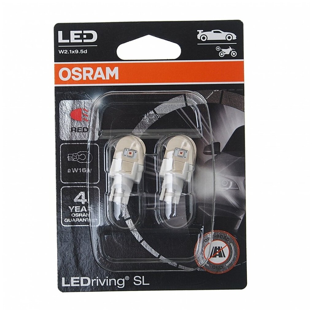 Лампа автомобильная Osram LEDriving SL W16W 12V-LED (W2,1x9,5d) Red 1.4W, 3 пок. бл.2шт, 921DRP-02B