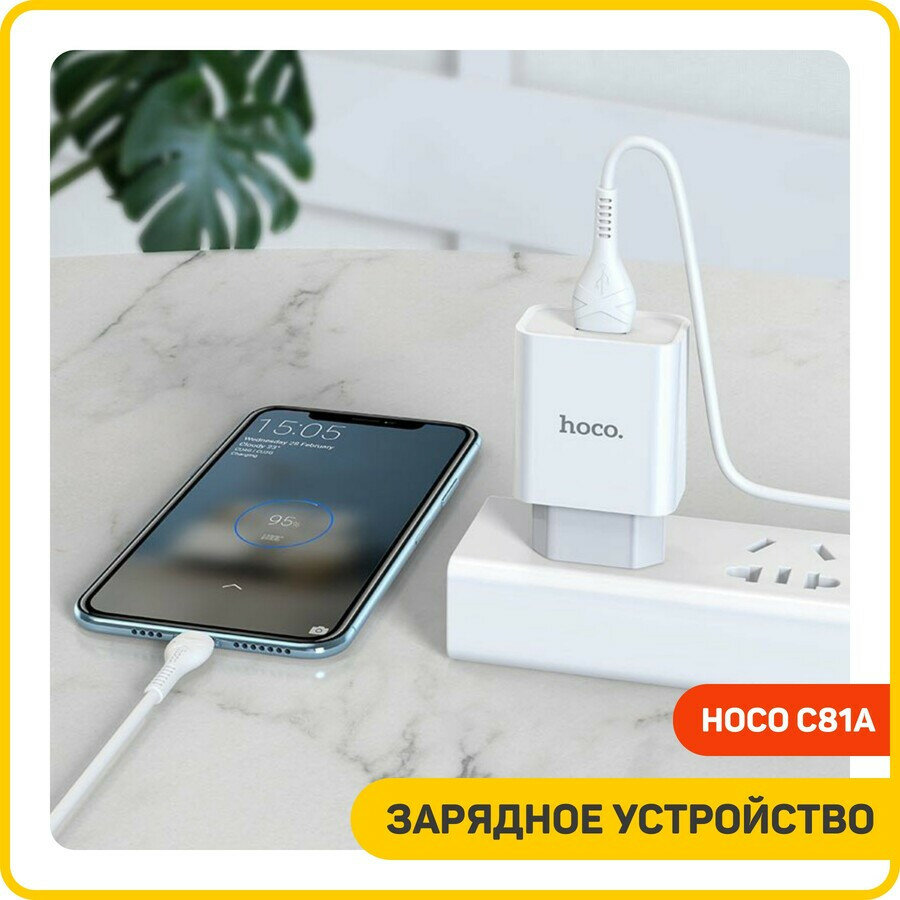 Сетевое зарядное устройство (СЗУ) Hoco C81A (USB) + кабель Type-C, 2.1 А, белый