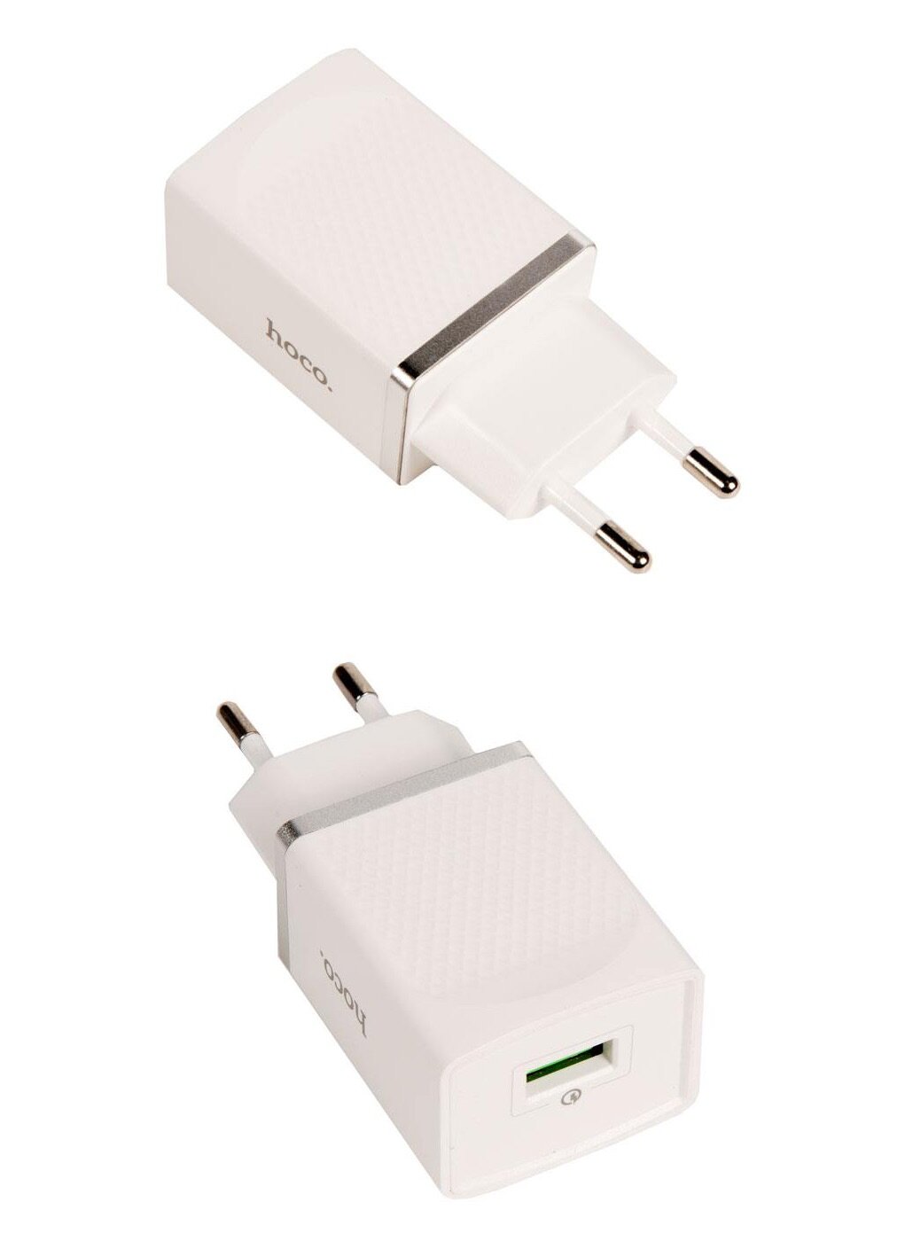 Сетевое зарядное устройство USB Hoco C42A (3A,быстрая зарядка QC 3.0) Белый