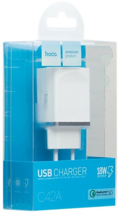 Сетевое зарядное устройство Hoco (C42A) Quick Charger 3.0 USB 18W (белый)