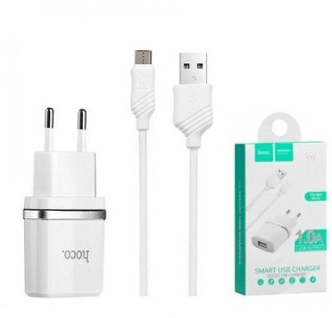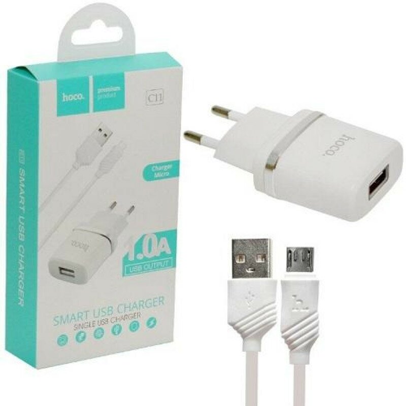 Зарядное устройство HOCO C11 Smart USB + Кабель USB-Micro, 1A, белый
