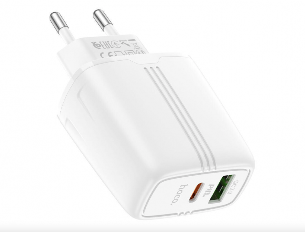 СЗУ, 1 USB 3.0 QC+1 PD 20W (N11), HOCO, Безопасный сертификат, белая интересное: