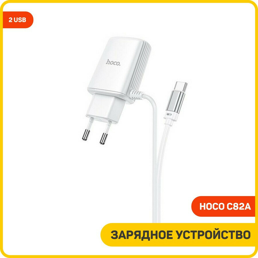Сетевое зарядное устройство (СЗУ) Hoco C82A (2 USB) + кабель Type-C, 2.4 А, белый