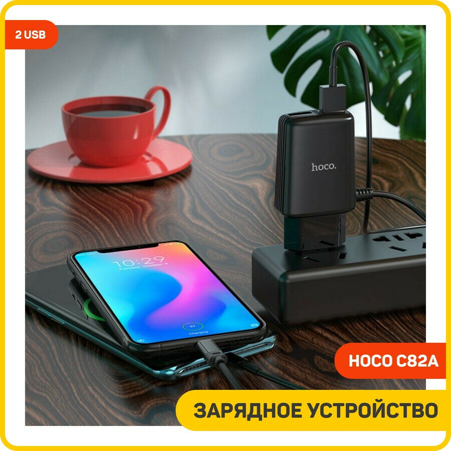 СохранитьСетевое зарядное устройство (СЗУ) Hoco C82A (2 USB) + кабель Type-C, 2.4 А, черный интересное: