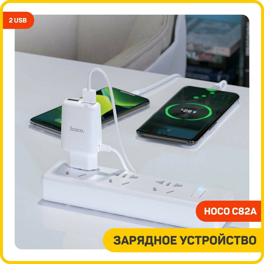 СохранитьСетевое зарядное устройство (СЗУ) Hoco C82A (2 USB) + кабель Type-C, 2.4 А, белый интересное: