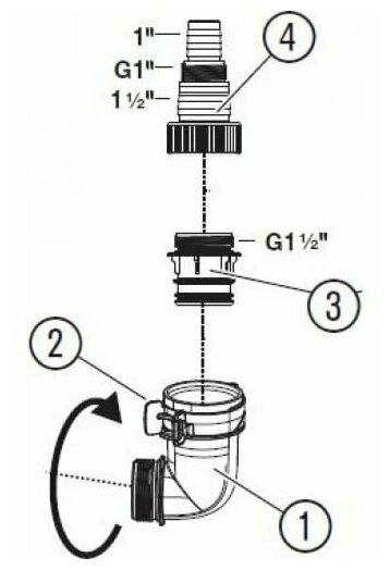 | Диаметр резьбы выходящего отверстия (G) | 1" |