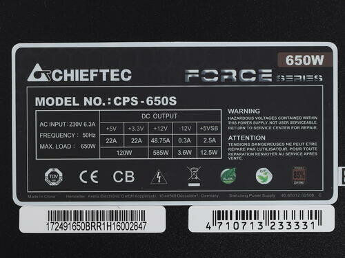 Блок питания Chieftec 650W FORCE CPS-650S интересное: