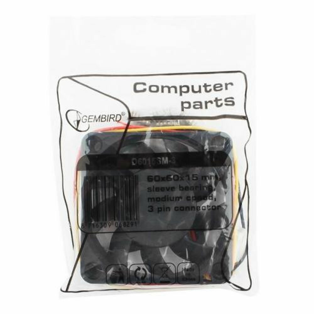 Вентилятор для корпуса Gembird 60x60x15mm разъем 3pin D6015SM-3