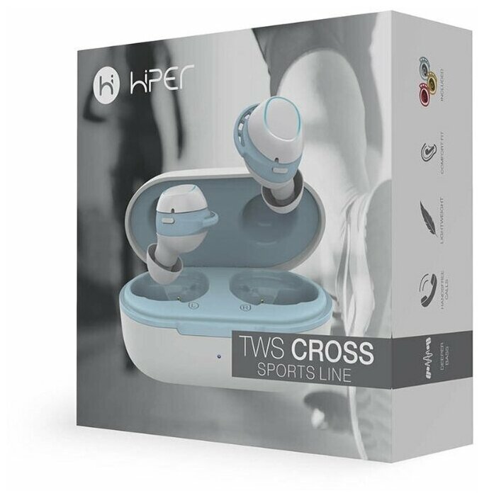 Купить Беспроводные наушники HIPER TWS Cross, белый/голубой