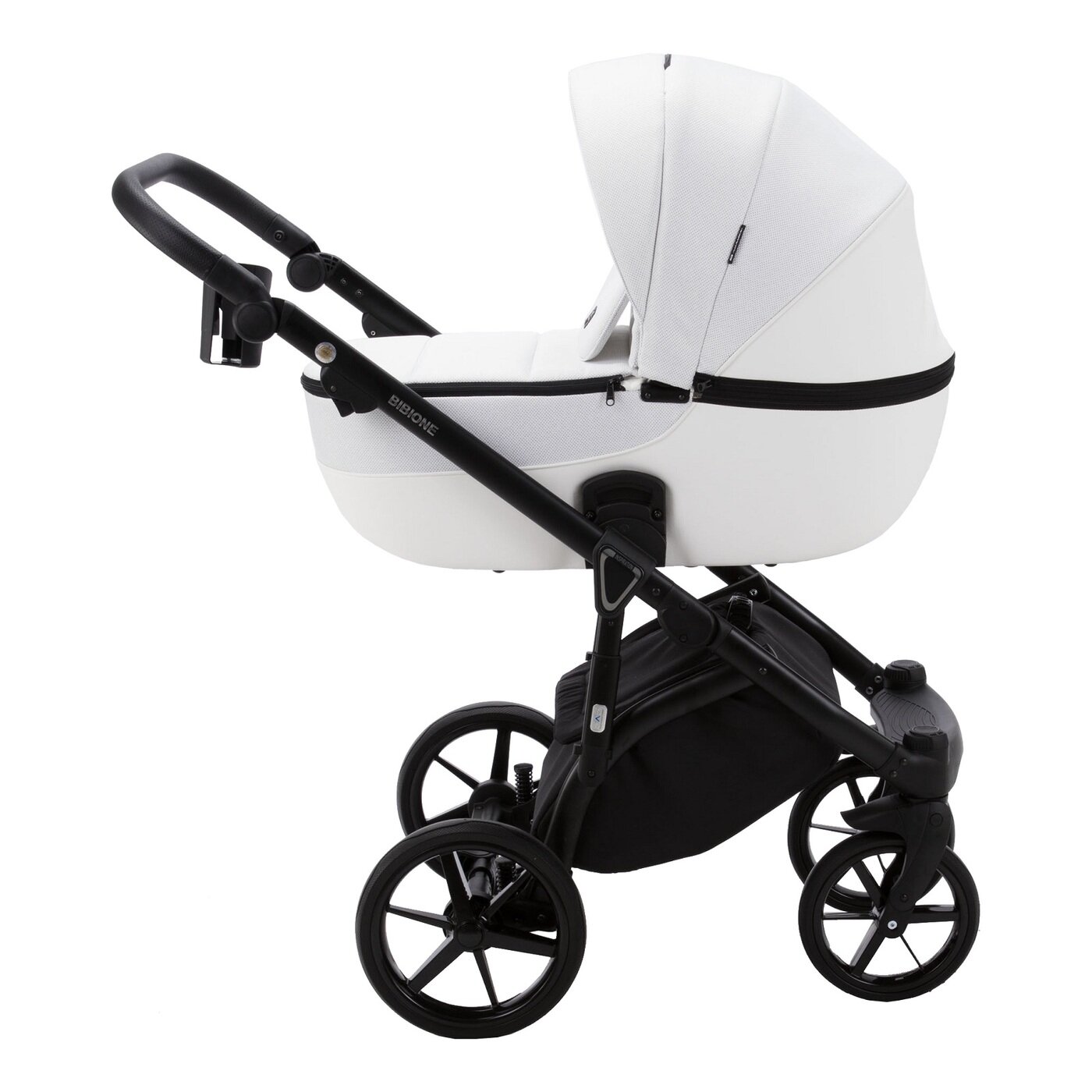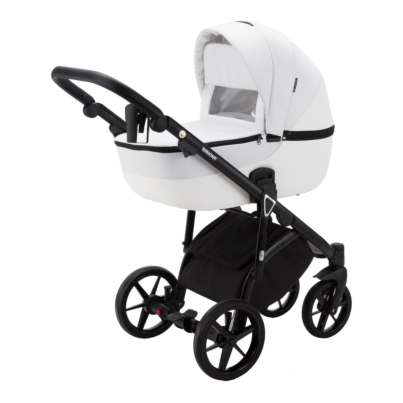 Коляска универсальная Adamex Bibione LUX 2 в 1, BI-TSB11 - бело-черная рогожка, черная кожа