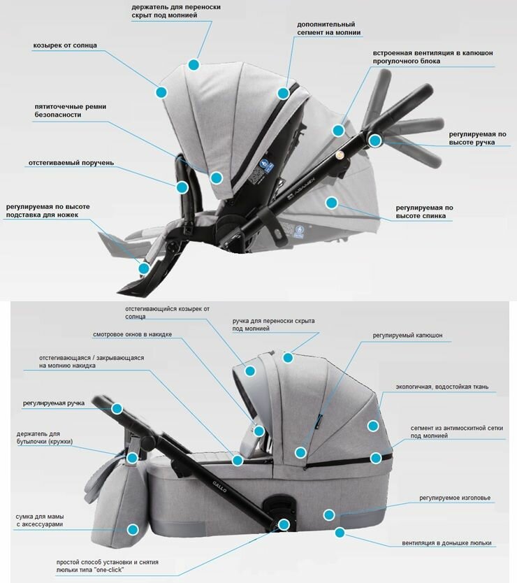 | Комплектация | Антимоскитная сетка;Дождевик;Капор;Корзина для покупок;Люлька;Матрас;Муфта;Накидка на ножки;Прогулочный модуль;Сумка;Съемный бампер |