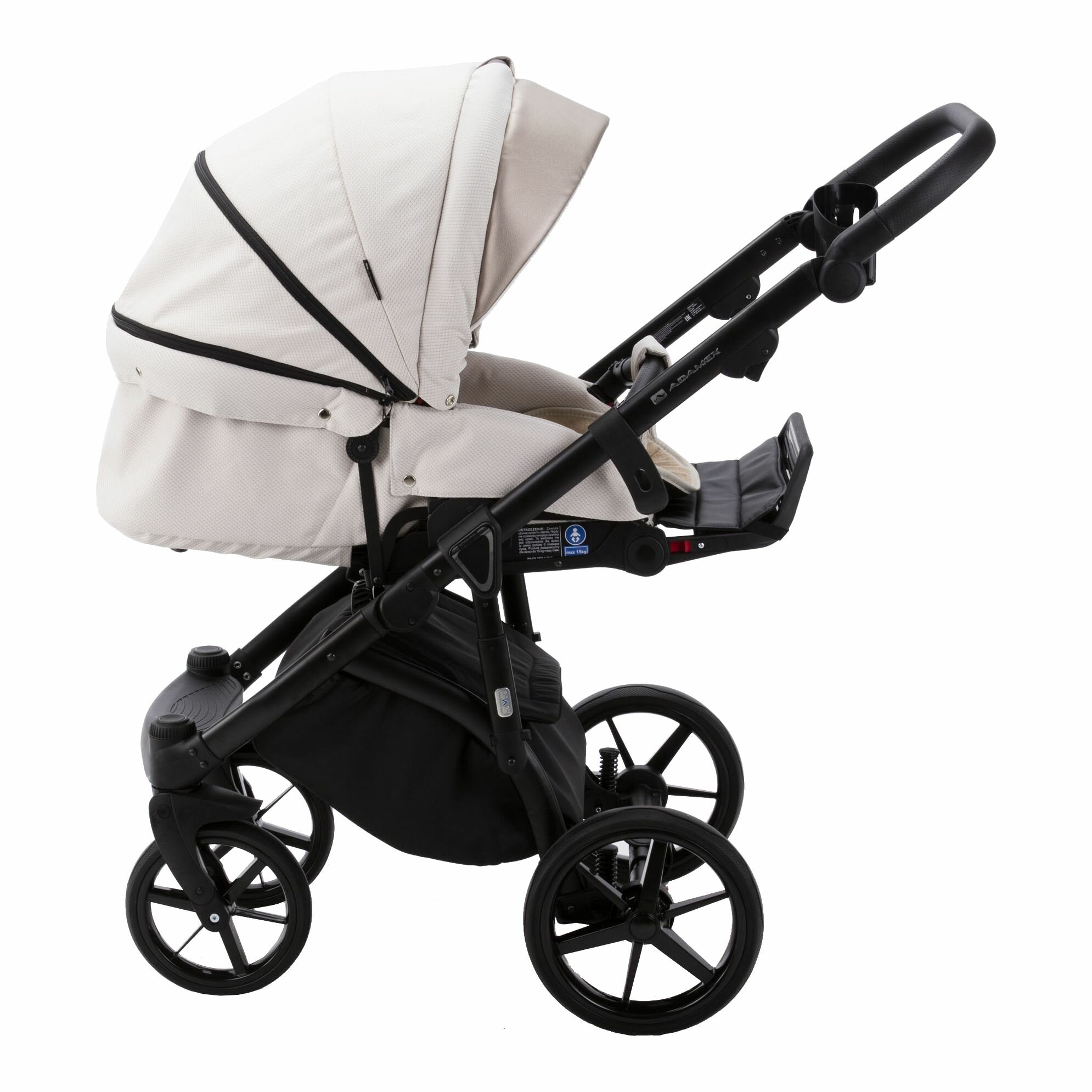 Коляска универсальная Adamex Bibione LUX 2 в 1, BI-TSB11 - бело-черная рогожка, черная кожа