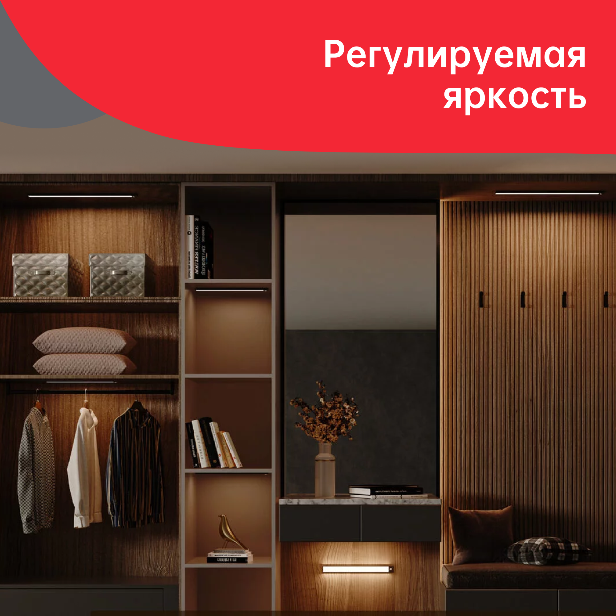 | Плюсы: | Тонкий, магнитный, с датчиком движения и света, тёплый свет. |
