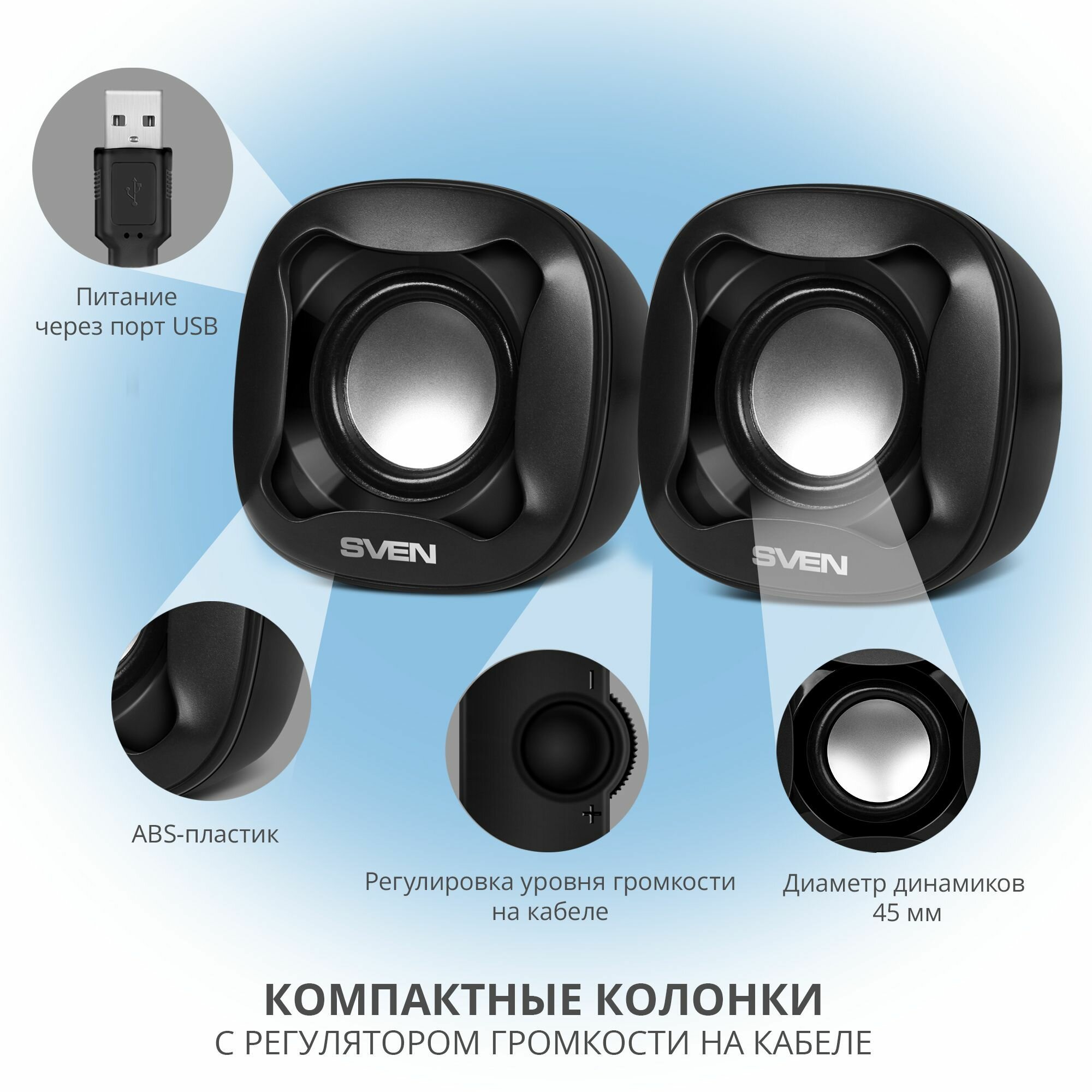 Колонки 2.0 SVEN 170 USB 5Вт черный