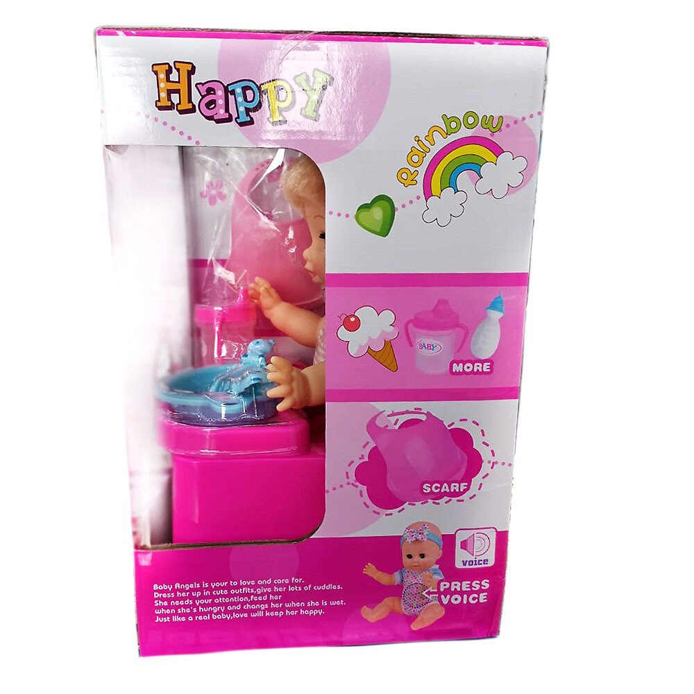 Купить Кукла ANGEL BABY (Ангел Беби) Am35-4 в наборе со столиком для кормления,тарелкой, ложкой вилкой, слюнявчиком, бутылочкой, поильником