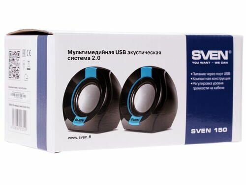 SVEN 150, чёрный-синий, USB, акустическая система 2.0, мощность 2x2,5 Вт(RMS)