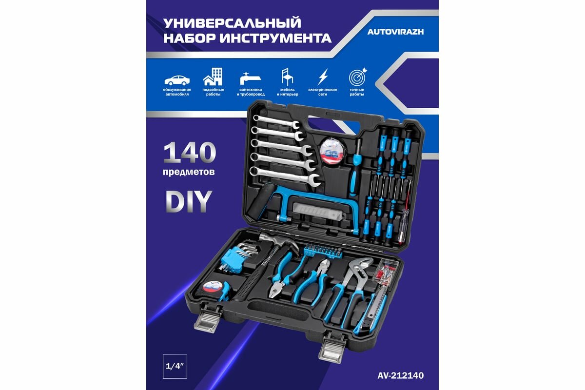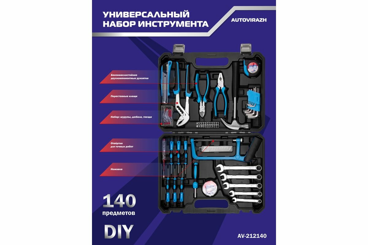 AUTOVIRAZH Набор инструмента 140 предм. AV-212140 интересное: